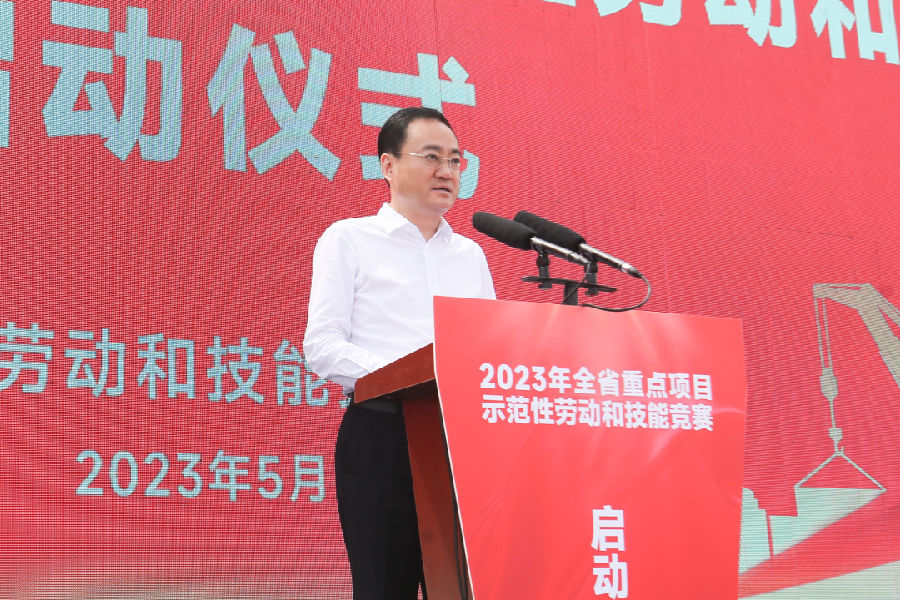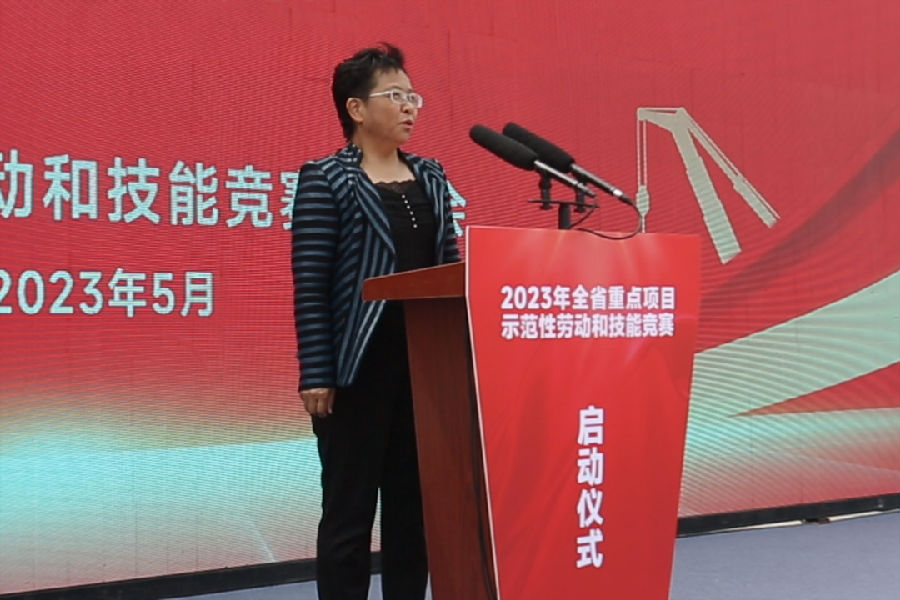賈玉梅宣布2023年黑龍江省重點項目示范性勞動和技能競賽正式啟動。